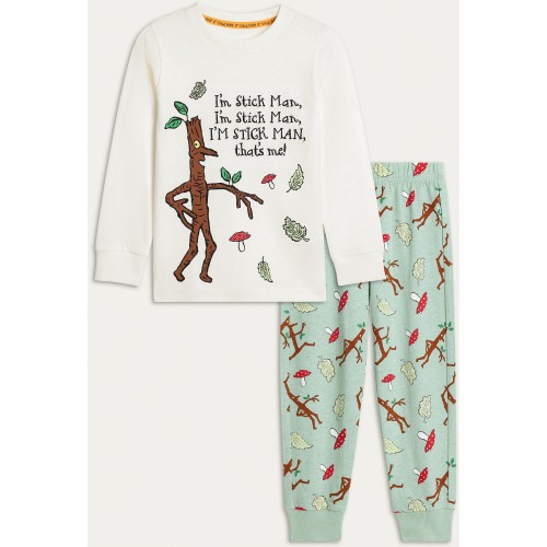 Girls Pure Cotton Floral Print Revere Pyjama Set in Cream