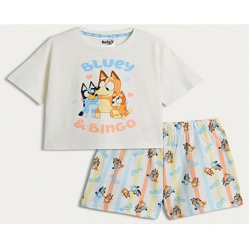 Bluey and Bingo Pure Cotton Pyjama Set in Cream