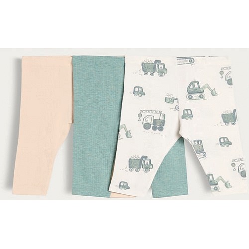 3-Pack Cotton Rich Floral Print Leggings in Green