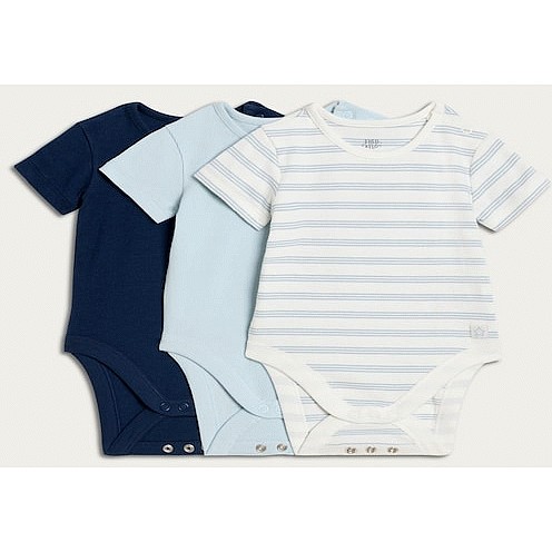 3-Pack Cotton Rich Bodysuits in Blue