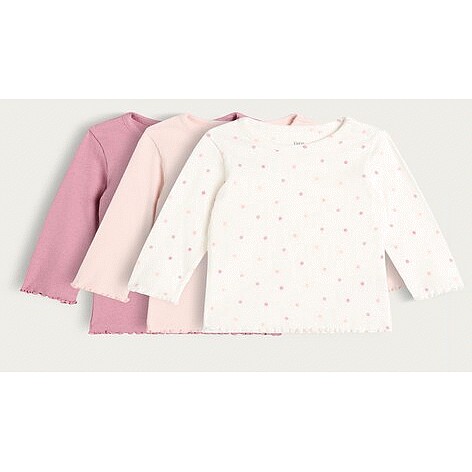 3-Pack Cotton Rich Long Sleeved Tops in Pink