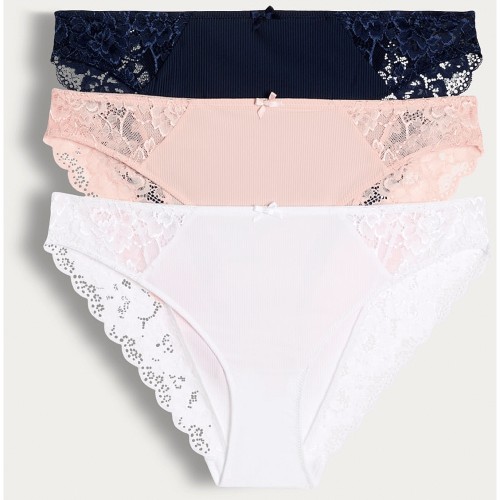 F&F 3-Pack High Leg Lace Trim Knickers in Pink