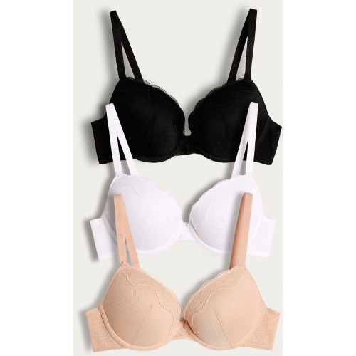 3-Pack Padded Push Up T-Shirt Bras in Multi