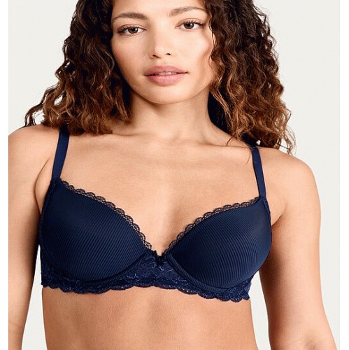2-Pack Ribbed Lace Trim Padded Wired T-Shirt Bras in Multi