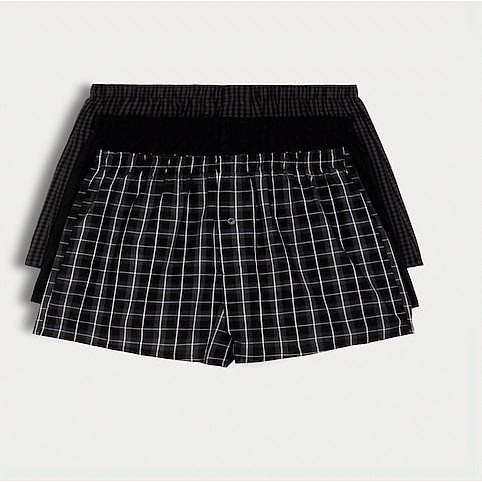 3-Pack Pure Cotton Checked Woven Boxers in Black