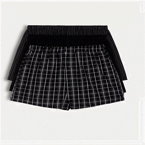 3-Pack Pure Cotton Checked Woven Boxers in Black