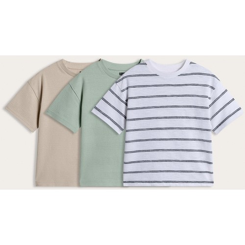 F&F Boys 3-Pack Pure Cotton Textured Short Sleeved T-Shirts in Multi
