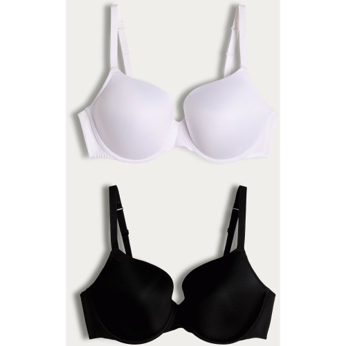 2-Pack Fuller Bust Underwired T-Shirt Bra in Multi Black White