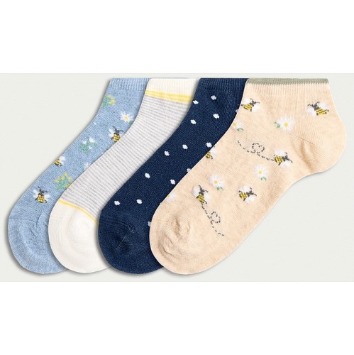4-Pack Cotton Blend Bee and Floral Trainer Socks in Multi
