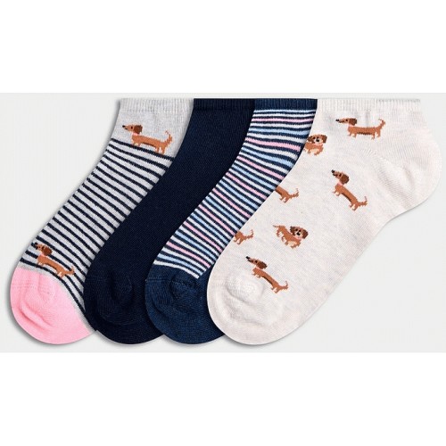 4-Pack Cotton Blend Dachshund Print Trainer Socks in Multi