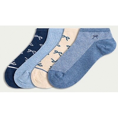 4-Pack Cotton Blend Bow Print Trainer Socks in Multi