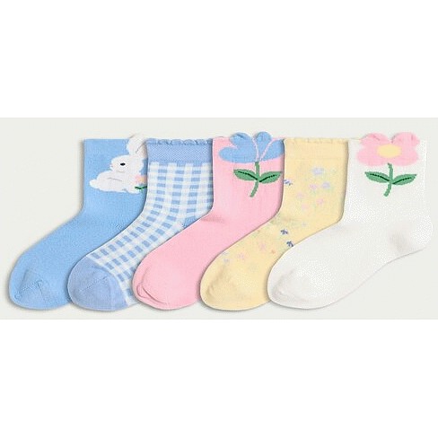 Girls 5-Pack Cotton Rich Patterned Socks in Multi