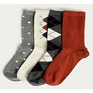 4-Pack Cotton Rich Argyle and Heart Print Ankle Socks in Multi