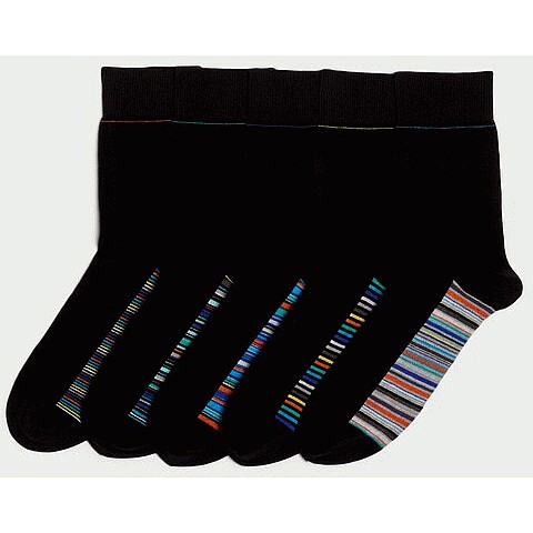 5-Pack Cotton Rich Stripe Print Footbed Ankle Socks in Multi