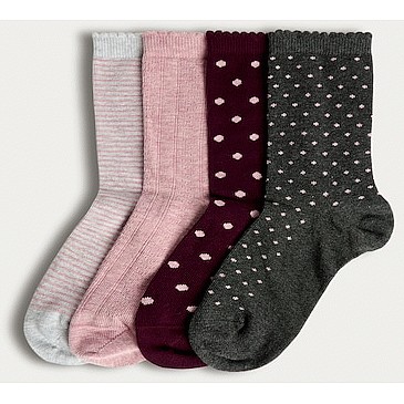 4-Pack Cotton Rich Polka Dot and Stripe Print Ankle Socks in Multi