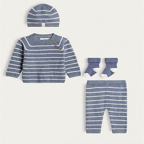 4-Piece Knitted Stripe Jumper Leggings Hat and Socks Set in Multi Blue