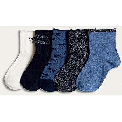 Girls 5-Pack Cotton Rich Bow Pattern Ankle Socks in Navy Multi