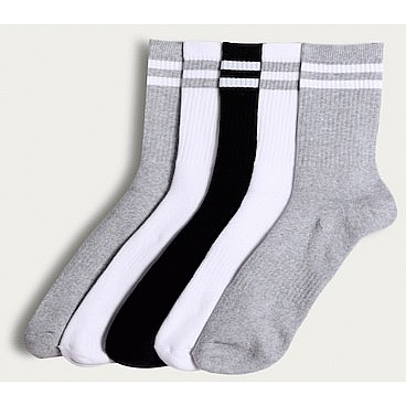 5-Pack Cotton Rich Ribbed Stripe Sports Ankle Socks in Multi Grey