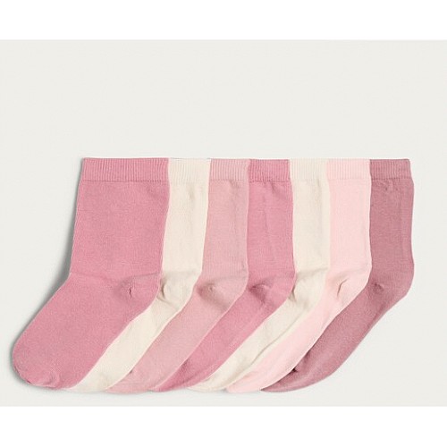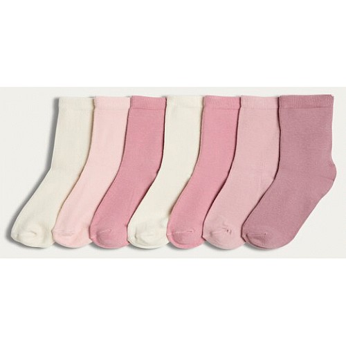 Girls 7-Pack Cotton Rich Ankle Socks in Pink