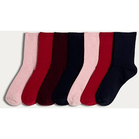 7-Pack Cotton Rich Ribbed Ankle Socks in Pink