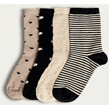 4-Pack Cotton Rich Heart and Stripe Print Ankle Socks in Multi