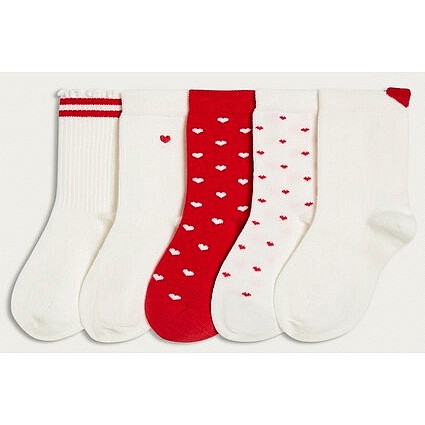 Girls 5-Pack Cotton Rich Heart Print Ankle Socks in Red