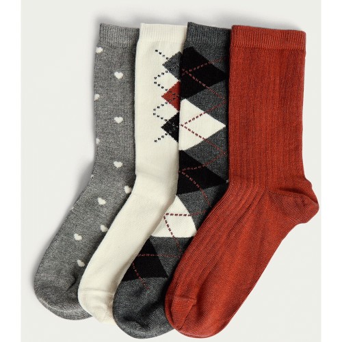 4-Pack Cotton Rich Argyle and Heart Print Ankle Socks in Multi