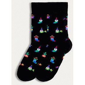 Cotton Rich Festive Gnome Print Ankle Socks in Multi
