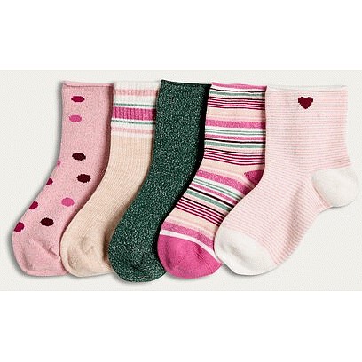 Girls 5-Pack Cotton Rich Patterned Ankle Socks in Multi