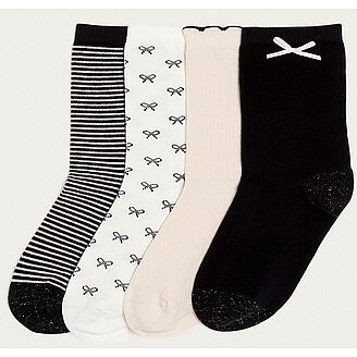 4-Pack Cotton Rich Bow and Stripe Ankle Socks in Multi