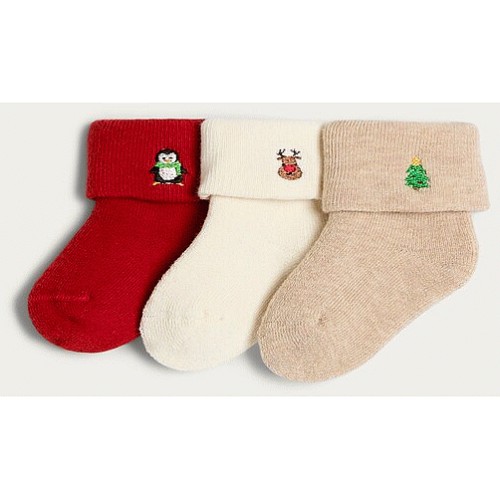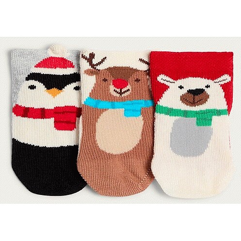 Baby 3-Pack Cotton Rich Festive Animal Ankle Socks in Multi