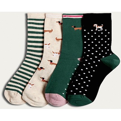 4-Pack Dog Print Ankle Socks in Green