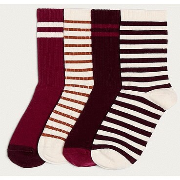 4-Pack Cotton Rich Ribbed Stripe Print Ankle Socks in Multi