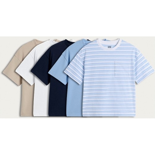 F&F Boys 4-Pack Pure Cotton T-Shirts in Multi Blue