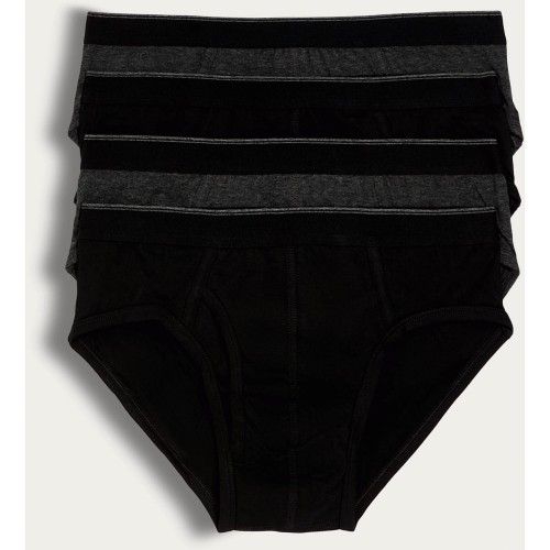 F&F 4-Pack Pure Cotton Striped Waistband Briefs in Black