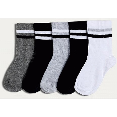 Boys 5-Pack Cotton Blend Striped Sports Socks in Black