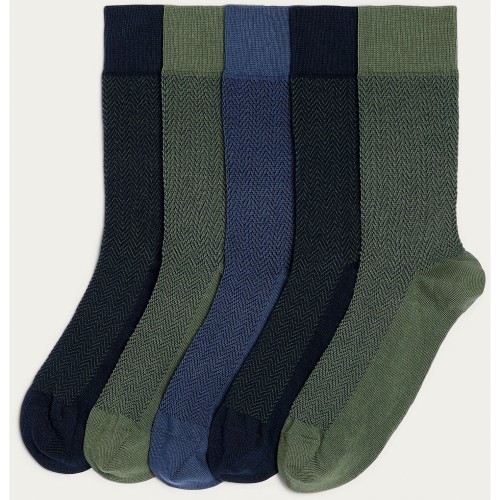 5-Pack Cotton Rich Herringbone Pattern Ankle Socks in Multi