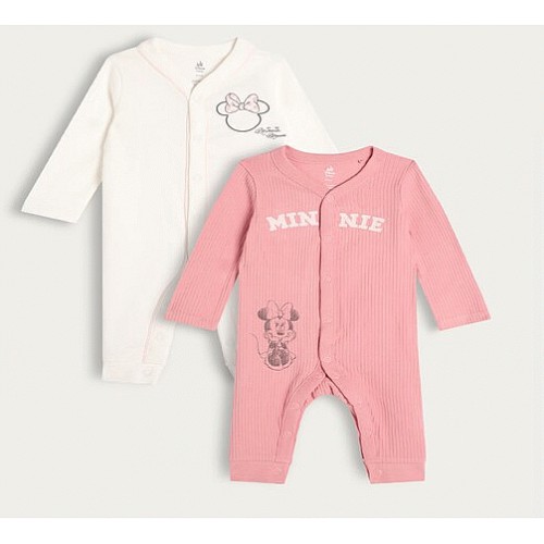 Disney Minnie Mouse 2-Pack Cotton Rich Sleepsuits in Multi Pink