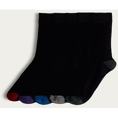 5-Pack Cotton Rich Contrast Toe Ankle Socks in Black