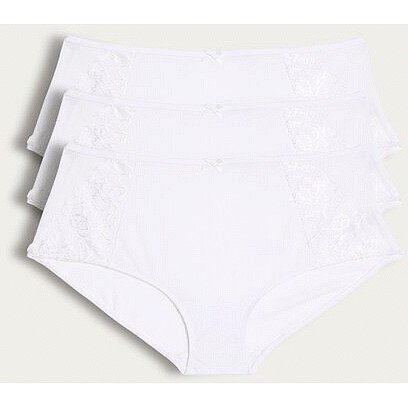3-Pack Full Brief Ribbed Lace Trim Knickers in White