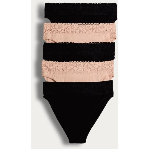 5-Pack Cotton Rich Lace Trim High Waist Knickers in Multi