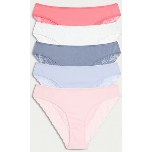 5-Pack Cotton Rich Lace Trim Brazilian Knickers in Multi