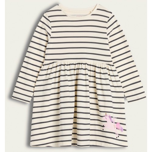 F&F Girls Pure Cotton Unicorn Stripe Print Dress in Multi