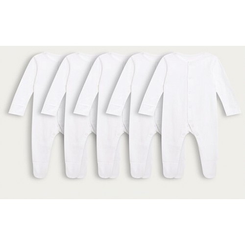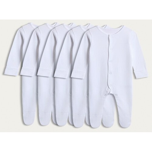 5-Pack Pure Cotton Long Sleeved Sleepsuits in White