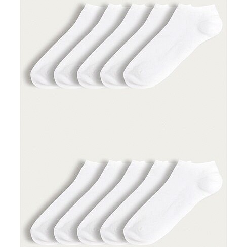 10-Pack Cotton Rich Invisible Trainer Socks in White