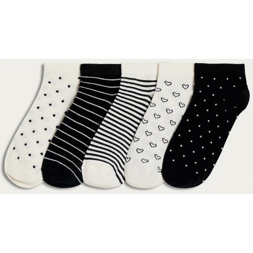 Girls 5-Pack Cotton Rich Patterned Ankle Socks in Multi