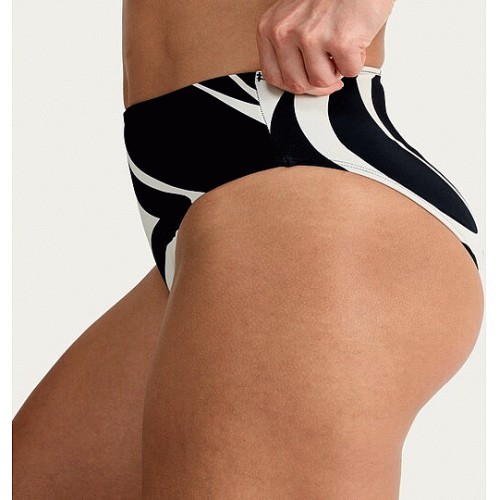 Abstract Print High Leg Bikini Bottoms in Multi Black White