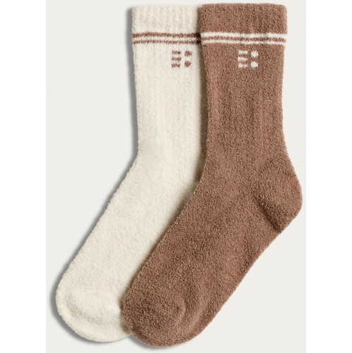 Active 2-Pack Textured Stripe Accent Cosy Socks in Neutral