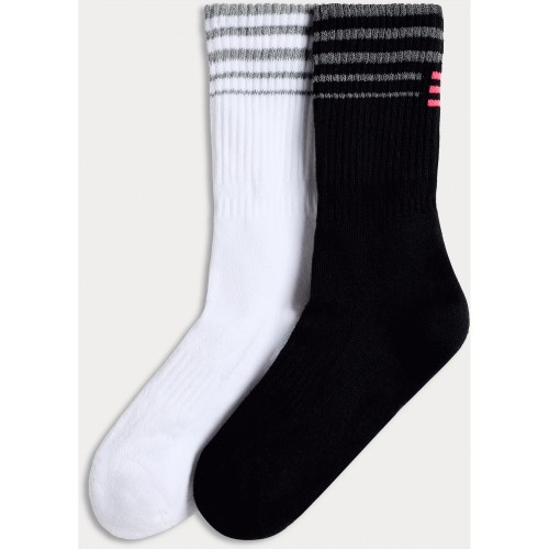 Active 2-Pack Cotton Rich Ribbed Stripe Accent Crew Socks in Black