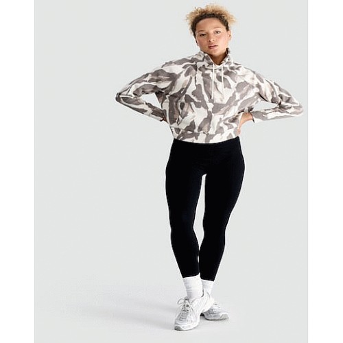 Active Abstract Print Cropped Hoodie in Grey